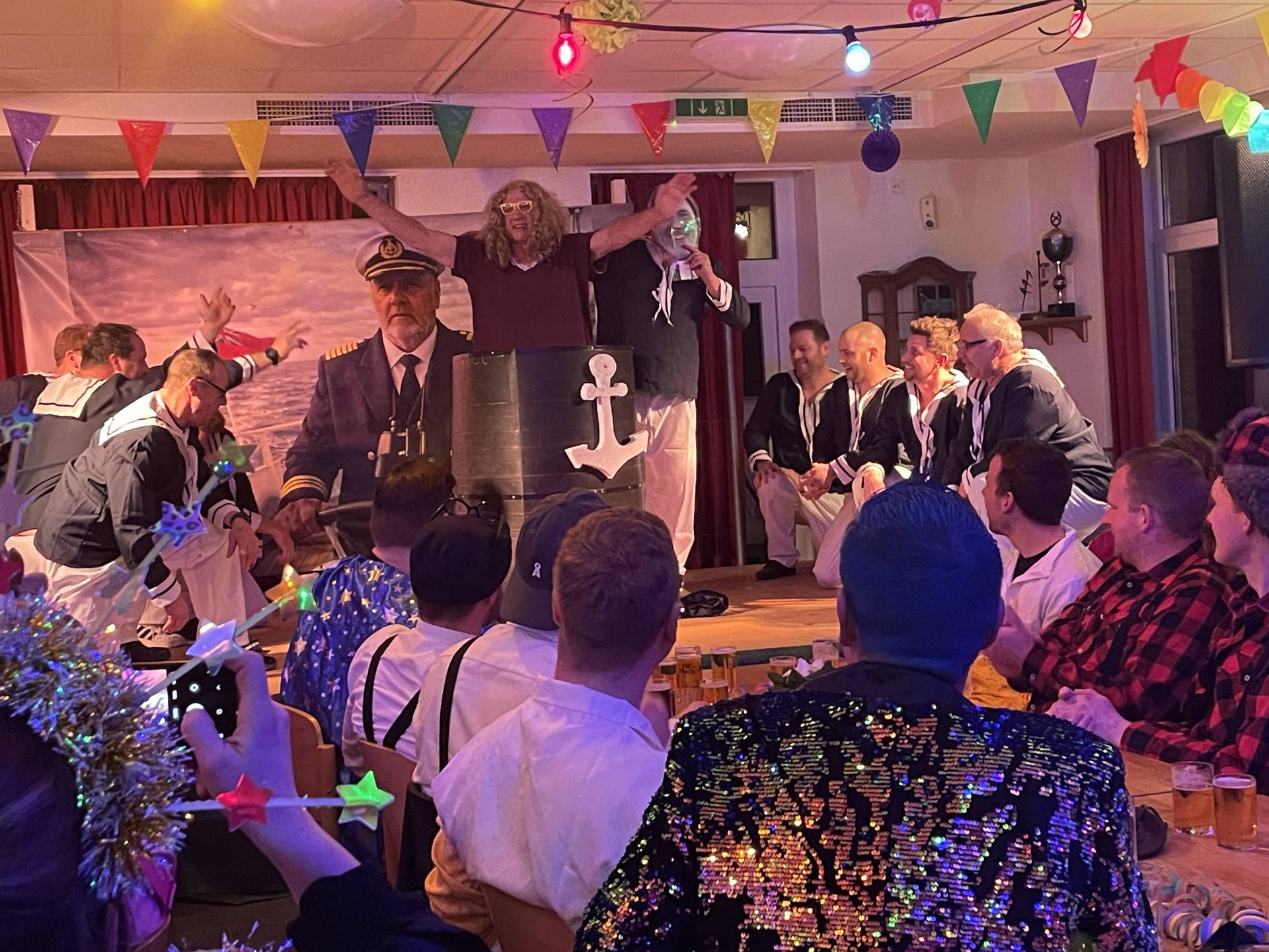 Das Familienfest (die Kappensitzung) der Hubertus Gilde fand in diesem Jahr zum ersten Mal in unserem Vereinsheim, unserem Hubertushaus, statt. Viele Jahre waren wir im Café am See bei Küsters. Leider konnten wir dort in diesem Jahr nicht mehr hin, so dass wir uns eine Alternative suchen mussten. Zahlreiche Mitglieder und Mitgliederinnen erschienen mit Freunden und Bekannten in ihren Kostümen bei dieser karnevalistischen Veranstaltung. Stephanie und Andreas Hiep führten, garniert mit diversen Zwiegesprächen, bei dem sich der ein oder andere wiedergefunden haben wird, durch den Abend. Den Einstieg in den Abend machte in diesem Jahr unser Männerballett „Original Lockstepper Keylaer“. Mit einer nie dagewesenen Titanic-Darbietung brachen sie das Eis als erster Act des Abends. Danach brachte „Der Metzger“ alias Franz Dahmen aus Wetten den Raum zum Lachen. Die „Golden Girls“ brachten einen etwas anderen Tanz auf die Bühne. „Henn und Stina“ aus Twisteden waren in diesem Jahr auch wieder mit dabei. Sie brachten uns mal einen Termin beim Straßenverkehrsamt der Stadt Kevelaer auf humorvolle Art und Weise näher. Die Schießgruppe führte in diesem Jahr einen Country-Tanz auf. Danach begrüßten wir unser vereinsinternes Urgestein in Sachen Karneval. „Unsere Lisbeth“ alias Robert Achten. Den Abschluss machten „Die Unentschlossenen“. Ein würdiger Abschluss eines gelungenen Abends. Die Auftritte fanden allesamt großen Anklang. Vielen Dank nochmal an alle Akteure. Nach dem Finale incl. der nicht fehlen dürfenden Rakete und anschließender Polonäse, wurde auch im Anschluss des offiziellen Programmes noch lange gefeiert.